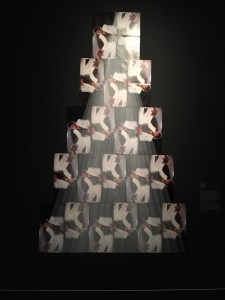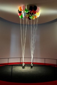 So richtig cool allerdings ist die Rutsche, die an der Eingangsfassade des Museums das Dach und den Vorplatz verbindet. Eine bespielbare Skulptur des Künstlers Carsten Höller, die für mehrere Jahre installiert bleibt. Man rutscht auf einem Stück Sackleinen, das am Ende eine Tasche für die Füße und einen Festhaltegriff für die Hände hat. Und man kommt mächtig in Fahrt! Man liegt permanent steil in der Kurve und hat keine Muse, durch das Plexiglas nach draußen zu schauen. Das macht richtig Spaß! Wenn die Treppe, im Bild rechts zu sehen, nicht so lang wäre, würde es gleich noch einmal hinunter gehen.