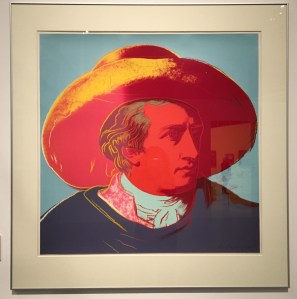 sieht alt aus, ist es aber gar nicht: Georgi Takev Goethe in der römischen Campagna 1996kennt man irgendwie immer, ist natürlich: Andy Warhol Goethe 1982ist schon ziemlich alt, ging und geht aber immer: Goethen’s Fäuste, alle entstanden zwischen 1772 und 1832