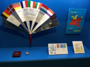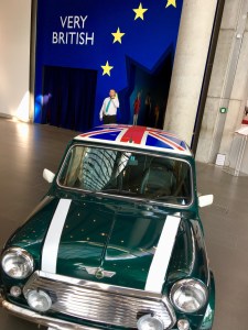 Wir wollen herausfinden, was denn nun typisch britisch aus unserer Warte heraus ist. Die Ausstellung beginnt schon vor den eigentlichen Räumen mit einem Mini Cooper, der durch eine blaue Wand, dekoriert mit den Sternen der europäischen Flagge, hindurch bricht, die Ausstellung dahinter beginnt dann auch gleich mit dem Brexit.