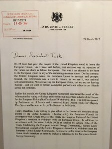Der Mini, die britische Kultmarke, entwickelt angesichts der Suezkrise 1956, gehört nun schon seit 25 Jahren zum BMW-Konzern, bleibt in den Augen der Briten aber weiterhin typisch englisch.Der berühmte Motivwagen des Düsseldorfer Wagenbauers Jacques Tilly von 2017. Mit ihm fahren später auch britische proeuropäische Aktivisten durch London (hilft aber wohl alles nix).Der Scheidungsbrief von Theresa May an den EU-Ratspräsidenten Donald Tusk.