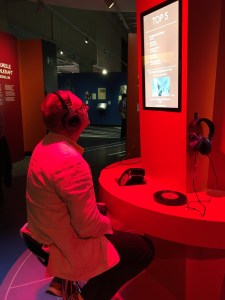 Der letzte Raum gefällt uns persönlich am besten. Hier können wir britische Popmusik selbst auswählen und anhören. 50 Singles liegen bereit zum Auflegen (Technik, die begeistert). An erster Stelle der Top 5 der Besucher*innen liegt Bohemian Rapsody von Queen.
