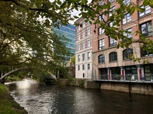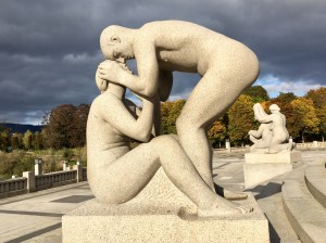 Nach einer Kaffeepause ist dann noch Zeit, in die Dansk Centralbibliotek zu gehen. Anlässlich des 100. Geburtstags des Vereins ‚NORDEN’ gibt es eine große Ausstellung, zu der je eine Künstlerin aus Dänemark, Finnland, Island, Norwegen und Schweden eingeladen wurde. Es gibt Skulpturen, Fotografien, Textilarbeiten, Installationen und natürlich auch Malerei zu sehen.