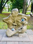 Randi Samsonsen (*1977) bespielt den ehemaligen Eingangsbereich komplett mit ihren gestrickten, gehäkelten, genähten und ausgestopften amorphen Objekten. Bunte Farben wecken Erinnerungen an die Kindheit und das Material Wolle ist das traditionsreichste Material ihrer Heimat. Färöer heißt übersetzt Schafsinseln.