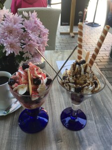 Nach den Einkäufen müssen wir uns dringend mit Kaffee und Kuchen stärken. Die Gastronomie rund um den Hafen ist vielfältig, aber es ist auch voll.
