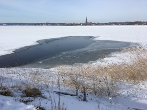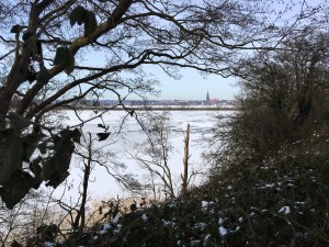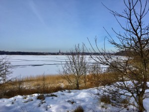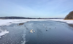 Es ging vorbei am zur Zeit geschlossenen Wikinger Museum Haithabu und der rekonstruierten Siedlung Haithabu. Das Noor war an dieser Stelle unter einer Eis- und Schneedecke verborgen. Das haben wir noch nie gesehen.