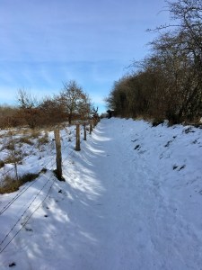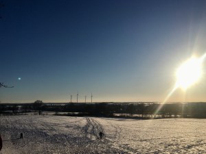 Nachdem wir am Sonnabend die nahen Ausläufer der Hüttener Berge zum Rodelvergnügen genutzt haben, inklusive Abstürze verursacht durch sich plötzlich auftürmende Maulwurfshügel abseits der Hauptbahn, ging es am Sonntag auf zu einer kleinen Wanderung.