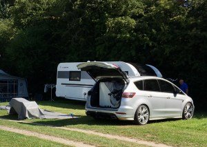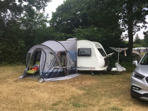 Bisher dachten wir, dass dieser große Anbau nur bei Dauercampern Usus ist. Jedoch sind heute die Nachbarn von gegenüber abgefahren. Der Rasen unter ihrem Vorzelt ist noch vorhanden und auch noch grün. Solange können sie daher nicht dagewesen sein. Ihr Außen-Kühlschrank passt so gerade eben in den Kofferraum des S-max.