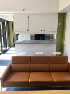 Treppauf geht es entweder in den Behandlungsraum oder in den (weitaus größeren) Aufenthaltsraum für die Angestellten.