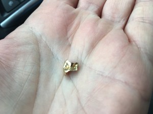 Beim Weingummi-Naschen (Kirschgeschmack) hatte ich plötzlich das Gefühl, auf einen Kirschkern zu beißen. Das konnte ja nicht sein, war es auch nicht. Das Weingummi hatte ein Inlay von meinem Zahn gezogen.