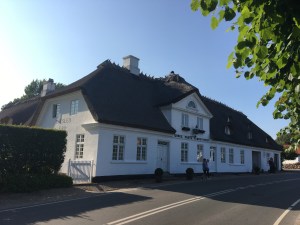 Damals waren die Damen und Herren wohl noch getrennt untergebracht. Heutzutage beherbergt der Frauenflügel ein Restaurant Namens ‚Die weiße Dame‘, in den anderen Gebäudeteilen außer im Hauptgebäude, sind Hotelzimmer. Zur Weihnachtszeit kann man hier echte dänische julehygge erleben, ab 605 Euro pro Person/ Tag im Doppelzimmer. „Ab“ bedeutet wohl nicht die Unterbringung hier, sondern eher in den umgebauten Ställen im dreiseitigen Wirtschaftsgebäude gegenüber.