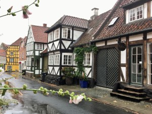 Das Wetter ist nicht so toll, daher machen wir einen Ausflug. In Aabenraa läuft gerade das jährliche Straßentheaterfestival. Leider laufen uns keine Live Acts auf unserem Bummel durch die Fußgängerzone über den Weg. Auch die Bühne am südlichen Ende ist verwaist. Wir spazieren einmal vom Rathaus/ Touristinformation die Gågade auf und ab (erstaunlich hügelig) und werfen den einen oder anderen Blick in die kleinen Nebengänge und Innenhöfe.