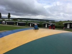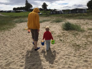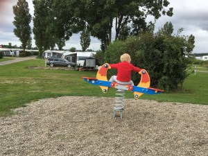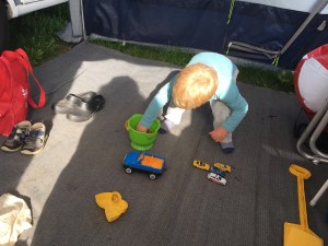 Zwischendurch bekamen wir Besuch vom Enkelkind. Das fand den Wohnwagen schon auf seinem Abstellplatz zuhause toll. Nun also ohne Eltern das erste Mal Mini-Ferien auf dem Campingplatz mit Oma und Opa. Bisher waren wir immer nur zu zweit und eingespielt. Doch auch der Besuch wurde ohne Probleme integriert. Wenn der Platz im Wohnwagen und im Vorzelt zum Autos spielen nicht mehr ausreicht, bietet der Campingplatz vielfältige Möglichkeiten, egal wie das Wetter ist (nur um es noch einmal zu erwähnen, wir befinden uns im Hochsommer). Ganz nach der Devise: Schlechtes Wetter gibt es nicht, nur schlechte Kleidung!