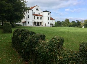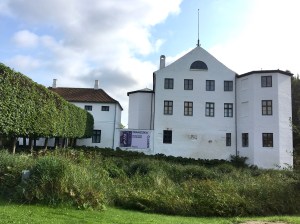 Eine weitere braune Hinweistafel an der Autobahn lockte uns zu Brundlund Slot, das das Kunstmuseum der Stadt Apenrade beherbergt. Es werden wechselnde Künstler und Künstlerinnen der letzten 300 Jahre aus Südjütland ausgestellt, zur Zeit liegt der Fokus auf einer Werkschau von Franciska Clausen („Franciska und das ewige Experiment“), aufgewachsen in Apenrade, ausgebildet und geschätzt in München und Paris, später verkannt in Kopenhagen und sich wieder zurückgezogen nach Apenrade. Wer 1899 als Mädchen geboren wurde und wohl schon früh einen sehr eigenen Kopf hatte, hatte es sicherlich schwer, sich in der damals extrem männerdominierten Kunstwelt auf Dauer durchzusetzen. Und dann noch als ausgesprochene Vertreterin des Surrealismus, zu der sie sich in ihren Jahren in Paris entwickelte. In Apenrade verdiente sie später als Kunstlehrerin ihr Geld und versuchte (nicht so erfolgreich), auch Werbeplakate an die Produktinhaber zu verkaufen. Nach ihrem Tod im Jahr 1986 hinterließ sie 2500 Werke, die im Brundlund Slot archiviert sind.