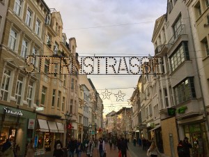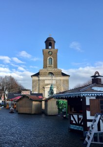 Auf dem Marktplatz wird bereits der Weihnachtsmarkt aufgebaut. Das Wahrzeichen Husums, die „Tine“, erschaffen vom Husumer Bildhauer Adolf Brütt, steht schon unter einem Zelt aus Lichterketten. Im Dunkeln sieht das bestimmt sehr stimmungsvoll aus, wir sollten dann noch einmal wiederkommen. Die Stadtkirche St. Marien im Hintergrund gilt als eines der bedeutendsten Werke des Klassizismus in Schleswig-Holstein.