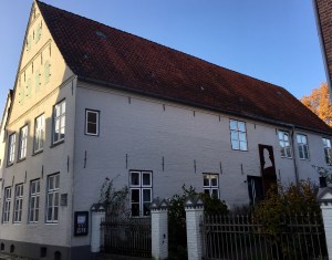 Man kann einen langen Stadtrundgang auf Storms Spuren machen, dafür ist es uns allerdings trotz Sonnenscheins zu kalt. Wir begnügen uns mit einem Blick auf sein letztes Wohnhaus in Husum in der Wasserreihe mit dem kleinen, auch im November hübschen Garten. Hier ist das Museum untergebracht, nebenan findet man das Storm-Archiv.