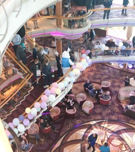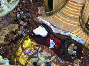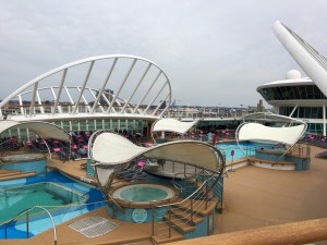 Wer‘s glaubt! Unsere head waitress darf ihn nun auch wieder bedienen. Sie erzählt uns später ihre Sicht: Mike hätte sich wiederholt (wie eigentlich auf jeder Kreuzfahrt) beschwert und um ihn zu beruhigen, hätte man ihm den Wein gegeben. Wie auch immer, es scheint geholfen zu haben. Die restlichen Abende sitzen Mike und Summer wieder am Tisch, haben recht gute Laune und essen nun auch andere Dinge als ausschließlich das New York Rib Steak.