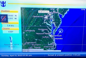 Ab dem Abend bestellen sie nur noch New York Strip Steak, denn alle anderen Gerichte mit den komischen Namen könne man nicht essen. Schließlich sei man auf einem amerikanischen Schiff. Seid zwanzig Jahren würde es kontinuierlich abwärts gehen mit den Menüs. Jedem das seine! Uns anderen gefällt die abwechslungsreiche Speisekarte sehr gut. Wir sind auch in der Lage, Begriffe wie Carpaccio, Risotto, vegan spaghetti, Flan Catalan usw. zu dekodieren. Der Oberkellner (unsere head waitress verweigert den Kontakt zu Mike) erkundigt sich während des Essens bei Mike: „How is your steak, Sir?“ und erhält die kurzangebundene Antwort: „It‘s a piece of meat.“ Allen anderen bleibt nicht nur die Luft weg, sondern fast auch der Bissen im Halse stecken ob dieser grob unhöflichen Antwort.