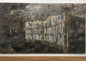 „Das zentrale Werk der Ausstellung ist der aus vier großformatigen, abstrakten Bildern bestehende Zyklus „Birkenau“ (2014). Er ist das Ergebnis einer langen und tiefen Auseinandersetzung von Gerhard Richter mit dem Holocaust und dessen Darstellbarkeit. Grundlage der Werke sind vier Fotografien aus dem KZ Auschwitz-Birkenau, die der Künstler mit Kohle und Ölfarbe auf vier Leinwände übertragen hat, um sie dann nach und nach abstrakt zu übermalen. Mit jeder Farbschicht verschwand die gemalte Vorlage etwas mehr, bis sie schließlich nicht mehr sichtbar war. Zu dem Werk gehört auch ein großer, vierteiliger Spiegel, der gegenüber den vier Birkenau-Bildern platziert ist und so eine weitere Ebene der Reflexion erzeugt.“ (aus der Beschreibung auf der Webseite).