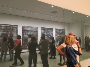 Aber im Untergeschoss sind zwei weitere Ausstellungen zu sehen. Wir sehen uns zunächst Gerhard Richters 100 Werke für Berlin an, die er der Neuen Nationalgalerie dauerhaft zur Verfügung stellt. Es finden sich Bilder aus allen Schaffensperioden: