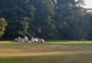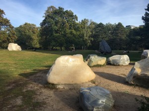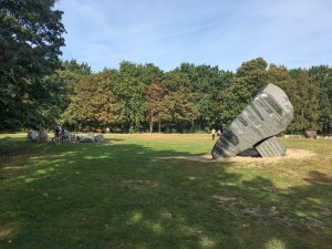 Der Künstler hat den Steinen Namen gegeben: Erwachen, Hoffnung, Vergebung, Liebe und Frieden. Wir sehen Hoffung und Vergebung, im Hintergrund Erwachen und Frieden. Das sind nur vier Stein (-gruppen), dazu eine leere sandige Fläche. Dort lag der Stein der Liebe. Er kam 1999 aus Venezuela und ist seit 2020 auch wieder dort, in einem Naturreservat eines indigenen Volkes. Der Stein ist für sie ein heiliger Stein und wurde damals ohne ihre Zustimmung abtransportiert. Der Streit darum zog sich bis in Regierungskreise hinein.
