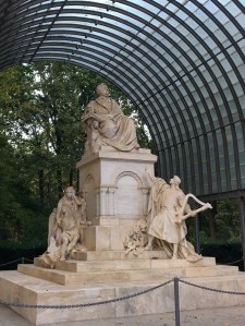1980 hatte die Luftverschmutzung und der saure Regen dem meistens verwendeten Mamor so zugesetzt, dass die meisten Denkmäler abmontiert, in Innenräumen gelagert und durch Betonkopien im Tiergarten ersetzt wurden. Inzwischen ist die Luft so viel sauberer geworden, dass die Originale wieder im Park zu sehen sind, wie hier das Standbild der Königin Luise, der Preußen liebste Königin.