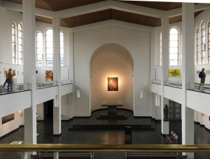 Das Innere ist sehr schlicht und hell gestaltet und bietet Raum nicht nur für Gottesdienste, sondern auch für Konzerte und Kunstausstellungen.