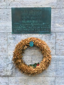 Die Gedenktafel erinnert an die Offiziere rund um Graf von Stauffenberg, die nach dem gescheiterten Attentat auf Hitler noch in der Nacht vom 20. Juli 1944 hier im Innenhof hingerichtet wurden.