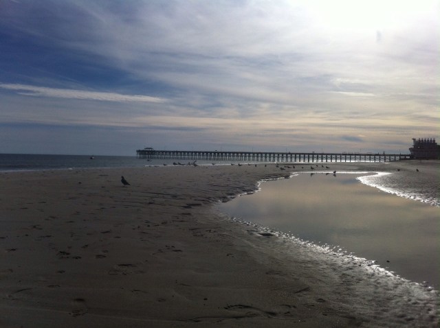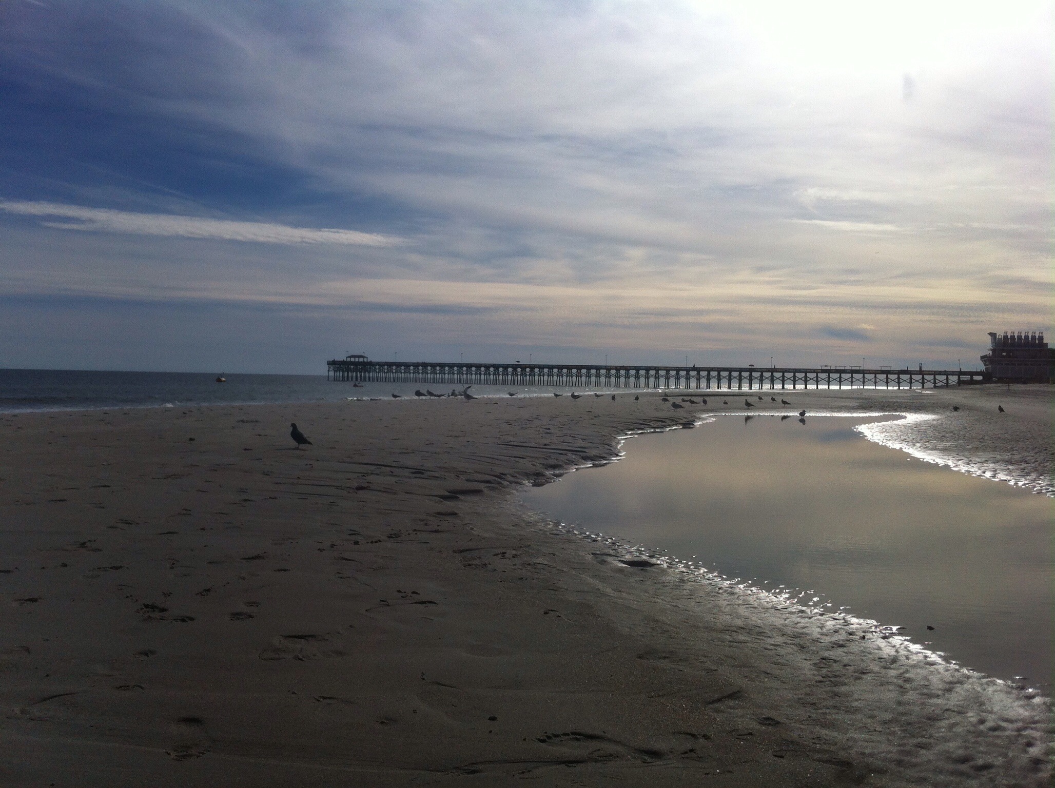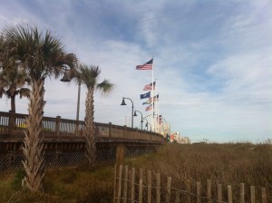 Der Atlantik lässt uns nicht los. Nicht genug damit, dass wir acht Tage und Nächte quasi in ihm herumgeschwommen sind, nein, jetzt sind wir wieder an der Küste angekommen, nur eben auf der anderen Seite des Teiches. Myrtle Beach ist, wie wohl jeder Küstenort hier, touristisch voll erschlossen. Aber da wir in der Nachsaison hier sind, ist es leer, viele Geschäfte sind geschlossen (macht gar nichts), viele Attraktionen auch (macht noch viel weniger was). Aber der Strand, der hat geöffnet und die Sonne auch. Nachts ist es frisch, so um die 6 bis 8 Grad. Und tagsüber scheint die Sonne bei heute 18 Grad. Und sogar die Muschelschalen haben amerikanische Ausmaße. Wir finden nur Bruchstücke, aber die sind größer als jede Muschelschale zuhause.