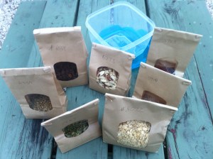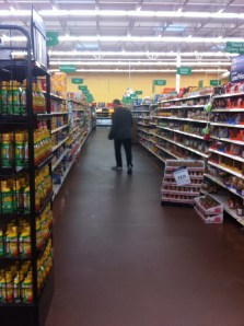 Kay sucht bei Walmart jeden Gang ab … … und sucht immer noch und findet trotzdem keine roten Linsen.Wir mischen unser Müsli selbst: Haferflocken, Weizenkleie, Sonnenblumenkerne, Kürbiskerne, Mandeln in Scheiben, Rosinen, Cranberries.