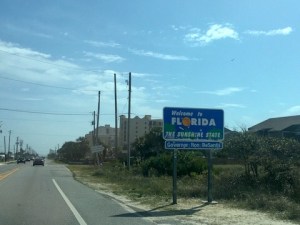 Good bye „Sweet home Alabama“; wir fahren wieder in den Sunshine State zurück. Es war sehr schön hier, leider gab es keinen freien Platz mehr für uns auf dem Campingplatz des state parks. Es weht hier inzwischen ein sehr starker Wind, die Strände sind doppelt rot beflaggt, das bedeutet, sie sind gesperrt. Später hören wir von den Tornado-Warnungen für dieses Gebiet. Gut, dass wir wieder nach Osten fahren und schneller sind als die Stürme.