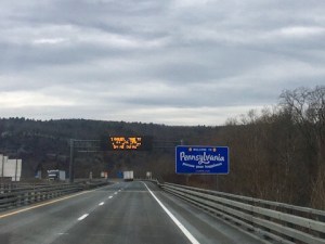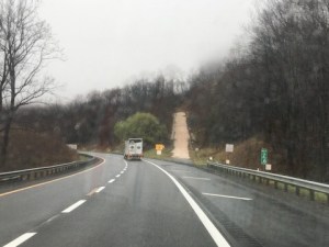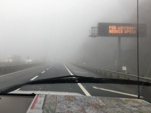 Danach ging es kilometerlang nur noch bergab, mit reduzierter Geschwindigkeit wegen Nebels (Muss ich noch sagen, dass sich außer uns niemand an diese Vorgaben hält?) und mit runaway ramps für LKW, falls deren Bremsen versagen.
