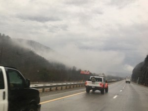 Wir biegen gleich auf die I77 South und fahren zuerst durch die Blue Ridge Mountains. Es geht wieder bergauf und ein bisschen hinunter und wieder ein bisschen mehr bergauf, bis auf 820 Meter Höhe.