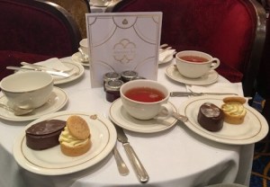 Das Essen wird nicht auf Etageren serviert, die Kellner kommen für die einzelnen Gänge mit Tabletts vorbei. Der Tee wird aus großen Kannen nachgeschenkt, wenn denn ein Kellner mit voller Kanne vorbei kommt. Nach jeweils anderthalb Runden mit den drei Tabletts (Sandwiches, Scones, Süßes) wird damit begonnen, die ersten Tische abzuräumen (nach einer halben Stunde). Das Ganze ist in keinerlei Weise stilvoll, sondern eine notwendige Massenabfertigung. Wir waren nur einmal dabei.
