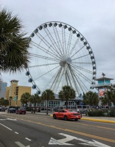 Das finden wir etwas später auch und gehen am Strand entlang bis zum Withers Swash. Dieser kleine Wasserlauf lässt sich nicht auf der Strandseite überqueren. Wir müssen zurück zur Straße. Wir durchqueren den Family Kingdom Amusement Park, einer der größten hier in Myrtle Beach, der sich links und rechts um den Flusslauf ausbreitet. Vieles ist schon neu gestrichen, aber es ist noch nichts geöffnet, wir sind in der Vorsaison hier. Das letzte Mal war auch alles geschlossen, da waren wir nach der Saison da, und es sah nicht so schön aus wie jetzt.