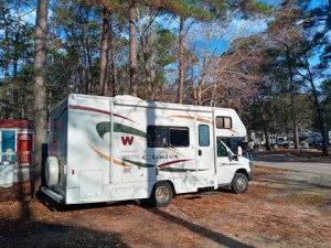 Bevor es an den berühmten Strand (The Great Strand, feinster Pudersand auf 100 km Länge!) geht, müssen wir erst einmal etwas Wäsche waschen. Jeder Campingplatz hier hat immer eine laundry (im Gebäude auf dem Foto) mit richtig großen, um nicht zu sagen riesigen Waschmaschinen und Trocknern. Alle Maschinen arbeiten mit Quarters, 25 Cent-Münzen. Daher gibt es auch meistens einen Wechselautomaten. Unsere Ladung wird in einen Toplader versenkt. Hier kommen die Münzen side by side in den Schlitten, immer zwei Münzen in einen Schlitz, dann den Schlitten mit Kraft in die Maschine schieben. Beim Trockner steckt man die Münzen jedoch einzeln in die Schlitze. Wie gut, dass wir immer hilfreiche Menschen treffen, die uns den Gebrauch erklären können.