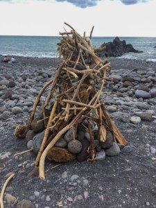 Wir wandern regelmäßig zur Praia Formosa, trinken einen Espresso und starren eine halbe Stunde auf den Atlantik und in die Sonne, bevor es wieder zurück geht. Nach dem Sturm kommen wieder vermehrt Menschen an den Strand. Es wird auch wieder gebadet. Einige bauen immer mal mit an dieser Skulptur: