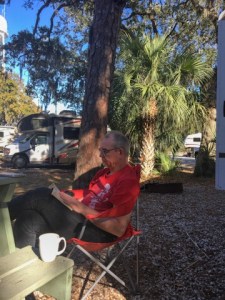 Am nächsten Tag entspannen wir uns und lesen viel. Am Strand gibt es einen kleinen Bücherschrank, und auch im Regal des Campgrounds werden wir fündig.