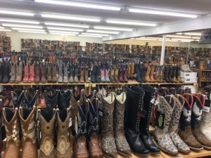 Das Outlet ist recht klein, dafür gibt es Stiefel in allen Schuhgrößen und auch für Kinder. Viele Stiefel haben ein sehr amerikanisches Design, sehr ganz witzig aus, sind aber wenig tragbar für zuhause, finden wir.